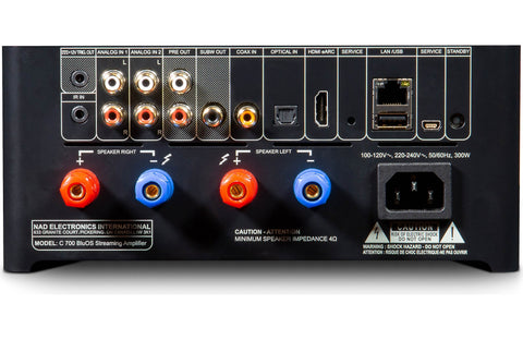 Dual stereo RCA inputs let you connect components like an external DAC or even a turntable with a phono preamp. Toslink optical and digital coaxial inputs make use of the C 700's high-res internal DAC for making digital sources sound great. An ARC-enabled HDMI input lets you use the C 700 to enhance your TV sound.